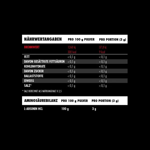 Zutaten: 100 % L-Arginin Hydrochlorid.