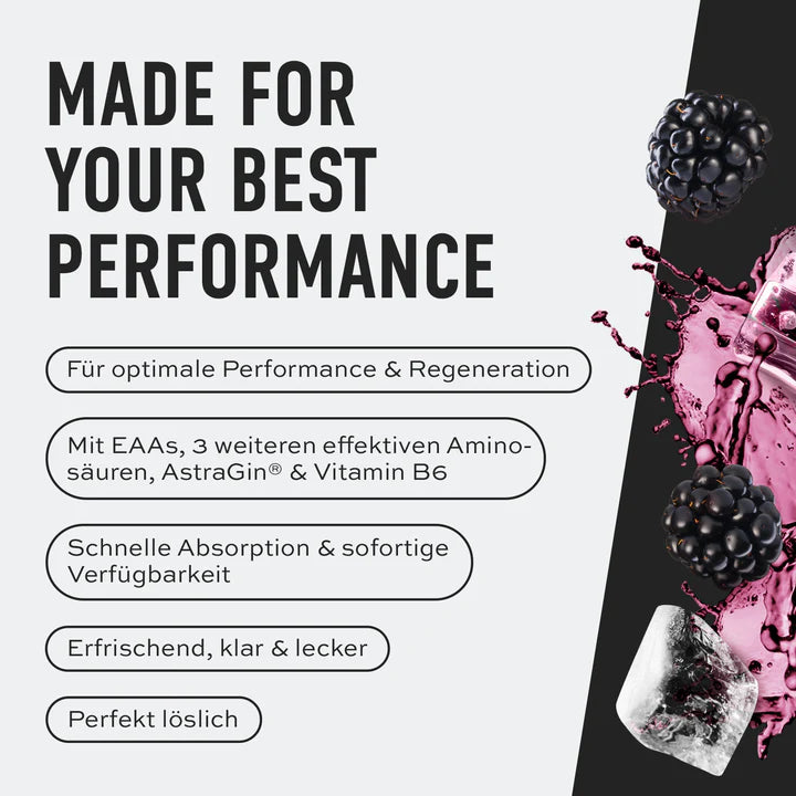 20 g AMINOS mit 500 ml kaltem Wasser im Shaker mischen und verzehren.
