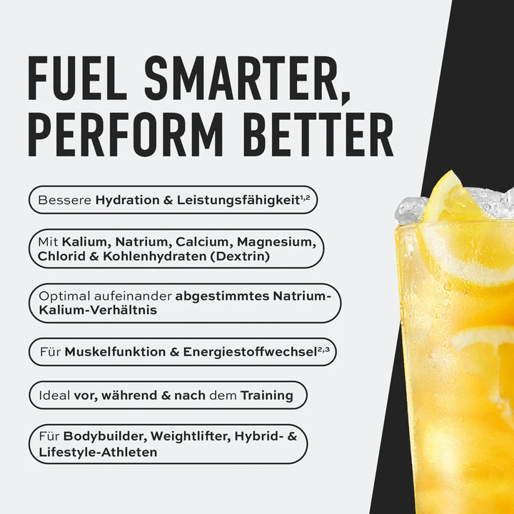 ESN Electrolytes ist ein Pulver zur Herstellung einer Kohlenhydrat-Elektrolyt-Lösung. Das Produkt enthält eine abgestimmte Mischung aus Elektrolyten und Kohlenhydraten zur Unterstützung der Hydration während körperlicher Aktivität. Sortenabhängig enthält das Pulver Natrium, Kalium, Calcium, Magnesium, Chlorid und Dextrin.