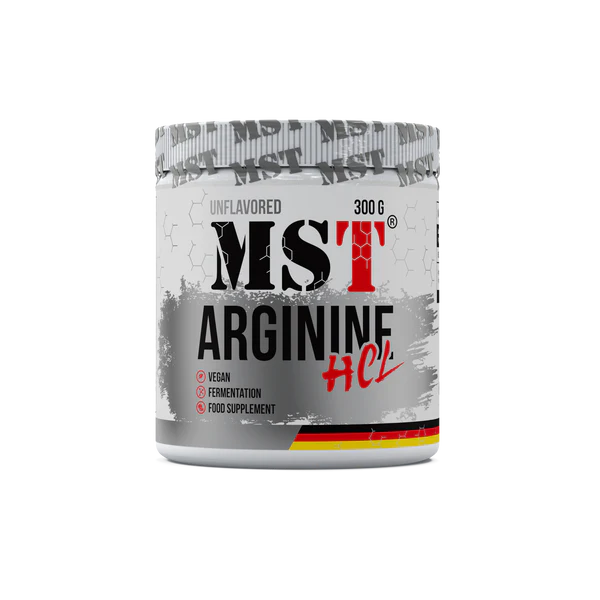 MST Arginine HCL 300 g Unflavored ist ein Nahrungsergänzungsmittel in Pulverform mit L-Arginin Monohydrochlorid (Fermentation). Die Nettofüllmenge beträgt 300 g. Das Produkt ist als Nahrungsergänzungsmittel gekennzeichnet.