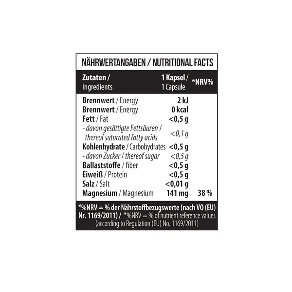 Zutaten: Magnesiummalat, Kapselhülle (Hydroxypropylmethylcellulose), Trennmittel (Magnesiumsalze der Speisefettsäuren).