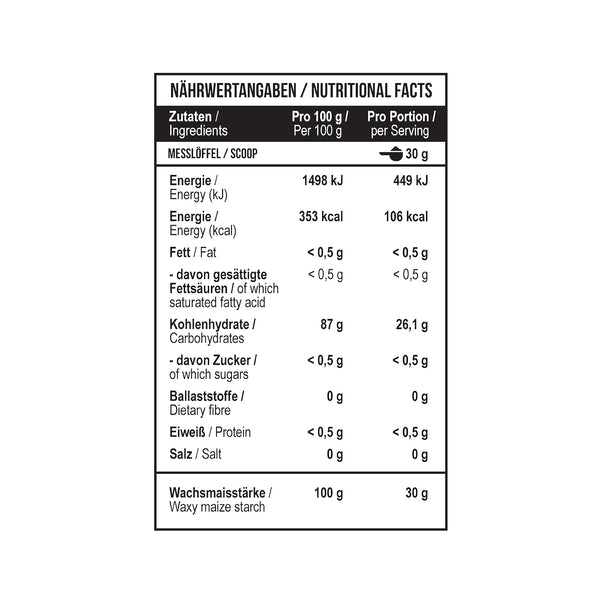 Zutaten: 100 % Wachsmaiskohlenhydrate (Amylopektin)