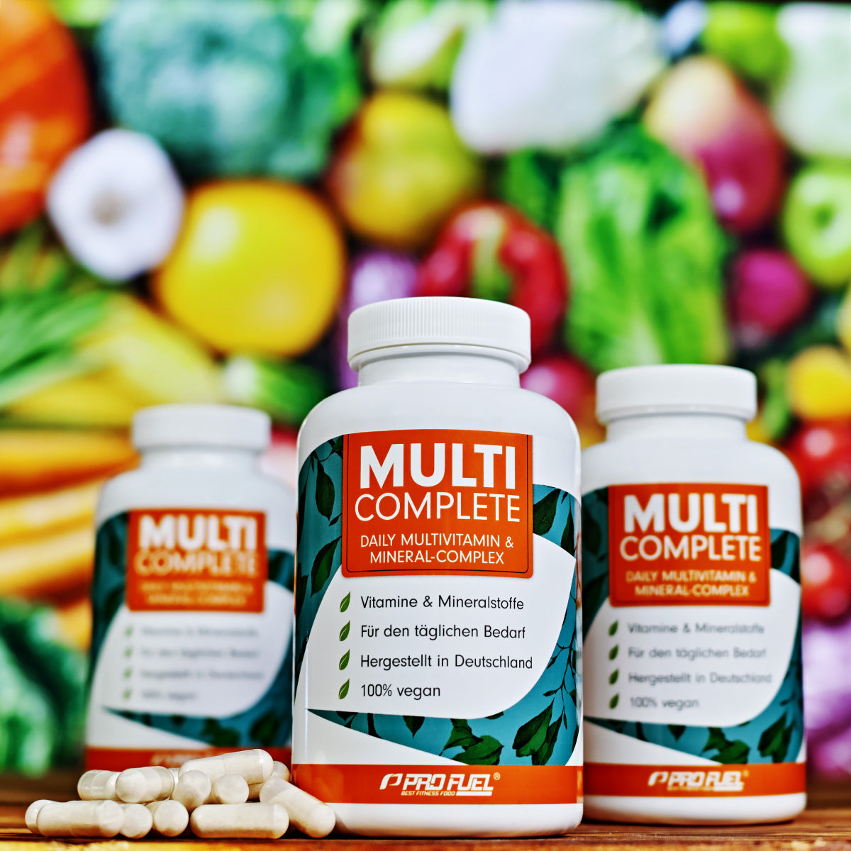 ProFuel MULTI COMPLETE 180 Kapseln ist ein Nahrungsergänzungsmittel in Kapselform mit Vitaminen, Mineralstoffen, Cholin, Rotalgenpulver und Pflanzenextrakt. Die Tagesportion (3 Kapseln) liefert essenzielle Nährstoffe zur gezielten Ergänzung der Ernährung und zur Schließung von Versorgungslücken.